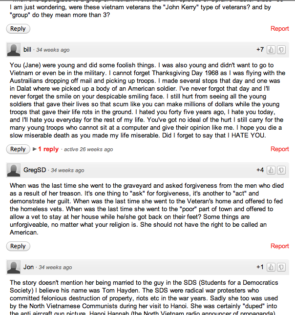 "Hey Hanoi Jane, I WILL outlive you just so I can piss on your grave!"
